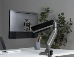 Adjustable Monitor Arm – Ergonomic and Space-Saving is designed to enhance your workspace by providing flexible positioning for your monitor. With a sturdy metal frame and a smooth gas-spring mechanism, it allows easy height, tilt, swivel, and rotation adjustments, ensuring optimal viewing angles and reducing neck and eye strain. The clamp and grommet mounting options make installation quick and secure on any desk. Its cable management system keeps your workspace neat and organized, while the strong build supports monitors up to 32 inches and 9 kg, making it perfect for both home and office setups.
